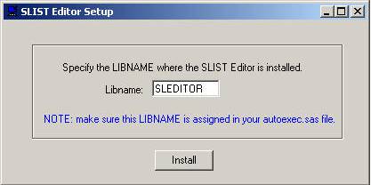 SLIST Editor Catalog. e.g. libname sleditor 'c:\sleditor';